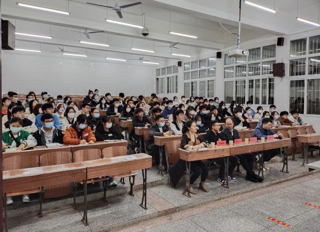 易老师首先向同学们解释大学的内涵,他认为大学兼具社会属性和学校属性,是一个小的社会单元,同学们在这里提高学历、能力和阅历,同时广交朋友,取得突出成就。易老师指出,学校的各个学生组织是以学生为主导的机构,是同学们能力培养的孵化期,要做一名优秀的大学生干部,就要明白自己是新时代大学生,是学生干部、是老师的助手,就要注意培养自己的奉献精神和领袖气质。