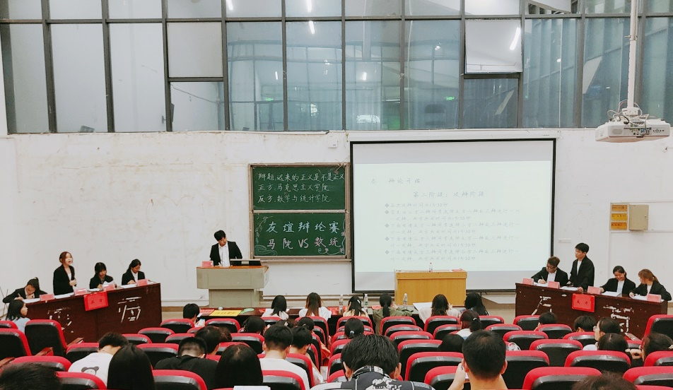 本网讯(见习记者 刘倩 钟颖鑫 田学炜/文 刘倩/摄)4月21日晚,我院联合马克思主义学院在5B403开展友谊辩论赛。我院张敏、熊皓云与马克思主义学院李梦萍、熊颖四位同学作为本次比赛评委。