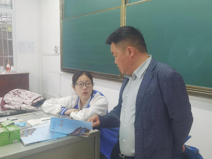 (本网讯 记者 樊蕙 韩静/文 樊蕙 韩静/摄)为形成优良的学风、院风,促进自习纪律。5月10日,我院党总支副书记、院长魏代俊及学生科辅导员刘聪进入班级巡查早自习开展情况。