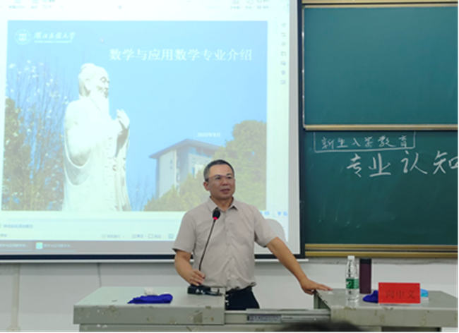 本网讯(记者 田学炜 李畅 朱显雯/文 李畅/摄)9月14日晚,我院数学系主任向中义教授和统计系主任向会立教授分别在3308、3303教室开授入学教育第六课——专业知识教育,2023级新生到场聆听。