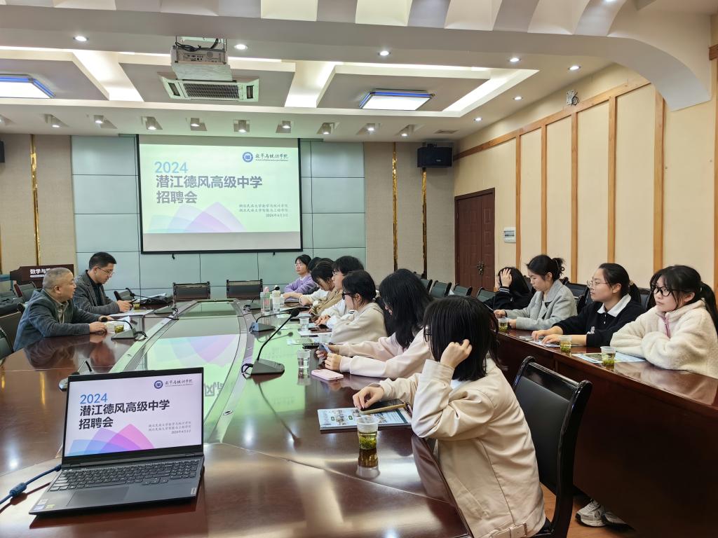 为抢抓招聘黄金期,推动2024届毕业生高质量就业,4月3日下午由数学与统计学院举办的春风送岗促就业·潜江德风高级中学教师专场招聘会在学院四楼会议室成功召开。本次招聘活动由数学与统计学院学生科牵头,智能与工程学院、文学与传媒学院相关学生参加。