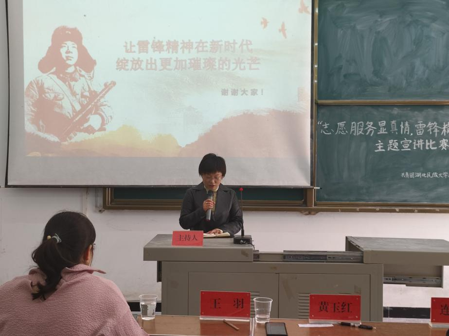 最后,黄玉红老师对这次主题宣讲比赛进行点评与总结。她表示,通过宣讲,同学们对雷锋事迹和雷锋精神有了更深刻的了解,希望同学们能将这份精神传承下去,并践行到日常生活中去。同时,作为当代大学生,我们应发扬钉子精神,心怀家国,争做追“锋”少年。