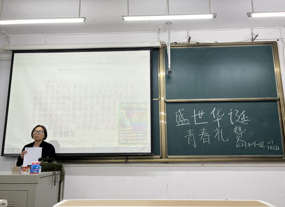 随着国庆假期的圆满落幕,10月7日晚,学院开展“盛世华诞,青春礼赞”主题晚点名活动,本次活动由各班主任主持,全体学生参加。