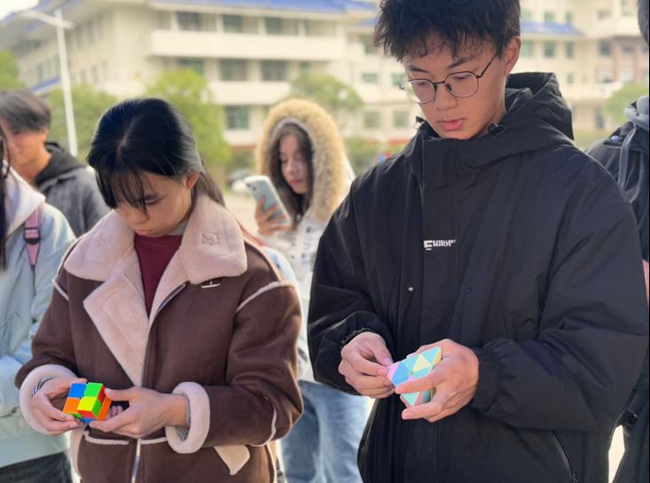 团队数学闯关环节,24纸牌、魔方还原与数学问题三大计时挑战关卡轮番上演。在24纸牌关卡中,各队成员配合默契,运用加减乘除的智慧,将手中的四张牌化为神奇的24;在魔方还原这项较量速度与技巧的关卡中,各队队员争分夺秒还原被打乱的色彩世界;在解决数学问题关卡中,各队对员则在解决一系列数学谜题的过程中,深刻体会到数学在生活中的无处不在与实用价值。