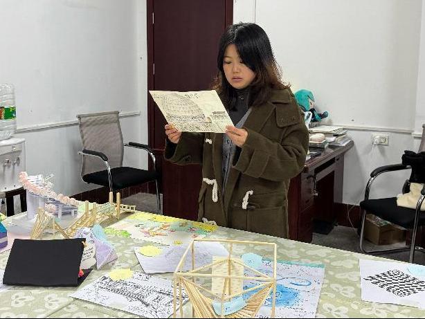 经过第一轮的学生投票,得出票数最高的14件参赛作品。学生科辅导员李子君作为评审老师进行第二轮投票,李老师从模型精巧度、创新性、实践性以及设计思想等方面对作品进行综合评定。
