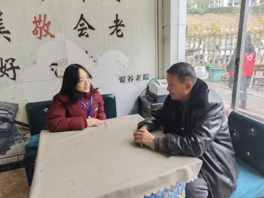 (志愿者与老人亲切交谈)