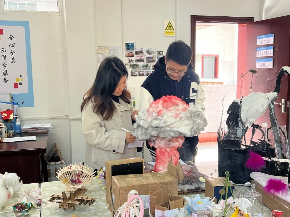 双轨评选:大众与专家的共同见证。4月1日,学院党总支副书记郑敏、学生科副科长廖祥宇、学生科辅导员李子君从创新性、实用性、环保价值等维度进行综合考评。通过“大众评审+老师评议” 双轨评选机制,最终叶延燎凭借出色的作品荣获一等奖,郑家、黄小楠获得二等奖,彭淑瑾、滚丽娟和段凯琼获得三等奖,张也、陈彦伶、黄荣正、宋文娜、孔婷和苏比努尔获优胜奖。