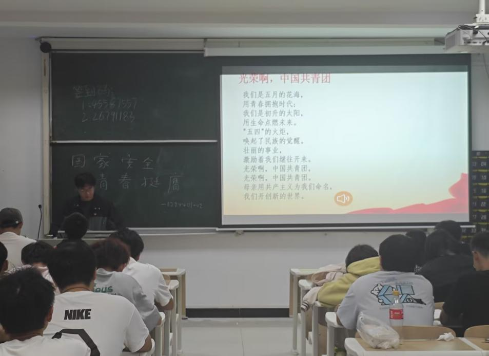 紧接着,团支书带领同学们开展团日活动。团支书讲解了国家安全的重要性,也为大学生关于如何维护国家安全提出建议,并且呼吁大家积极维护国家安全。