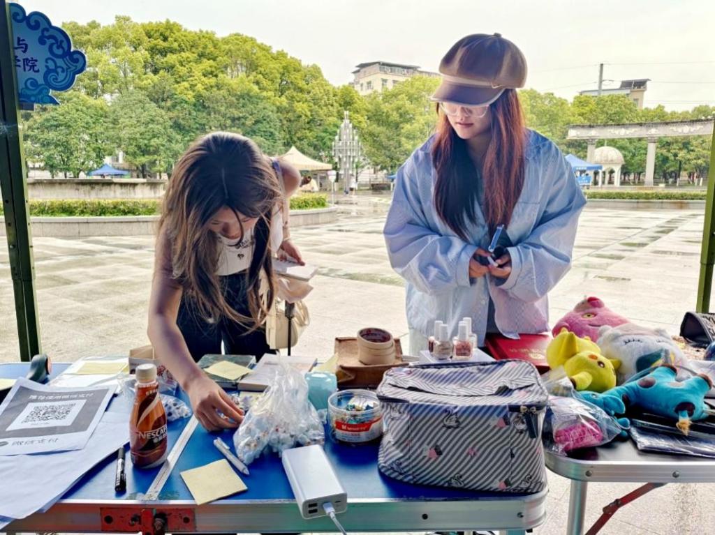 在跳蚤市场现场,同学们化身“淘宝客”穿梭于摆满各类闲置物品的摊位之间。从书籍文具到手工艺品,大家或俯身细察商品成色,或与摊主热烈议价,现场洋溢着浓厚的交易氛围。此外,我院特设抽奖环节,在交易完成后通过抽卡匹配游戏评定奖励等级,在促进物品流转的同时,也为同学们带来别样的体验与欢乐。