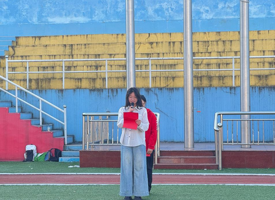 两位学生代表邬远莉和许万金子以饱含深情的话语进行诗歌朗诵,号召大家勇攀高峰、锤炼本领,以坚定信念攻坚克难,在奋斗中实现人生价值。最后,全体学生齐唱《歌唱祖国》,活动在的嘹亮歌声中落下帷幕。