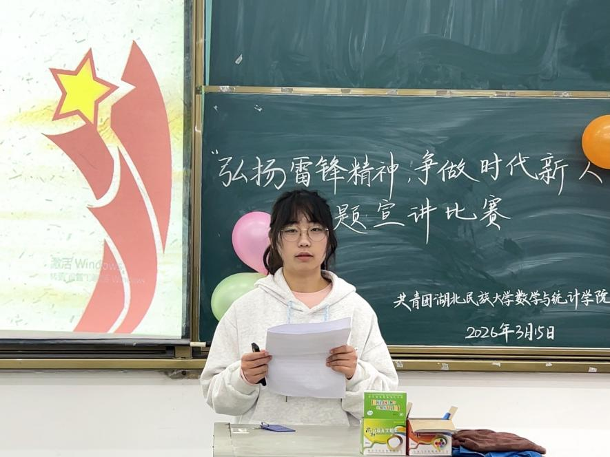 比赛现场,参赛选手依次登台,全员紧扣主题,各展风采。选手们或深情追忆雷锋同志的经典事迹,重温榜样的温暖力量;或结合自身志愿服务经历,分享践行雷锋精神的真切感悟,同时借助 PPT、照片、视频等多元形式,让宣讲内容更生动、更具感染力,生动诠释了新时代青年对雷锋精神的理解与传承,也展现出数统学子向善向美的精神风貌。