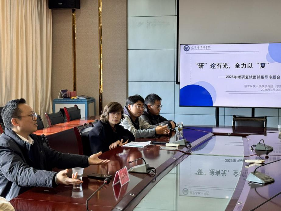 为帮助考研复试学子精准备考、明晰方向,3月20日,数学与统计学院在四楼会议室召开2026年考研复试面试指导专题会。学院党总支书记魏代俊,党总支副书记郑敏,学院副院长向会立参会指导,为考研“最后一公里”保驾护航,进入复试阶段的学生参会。