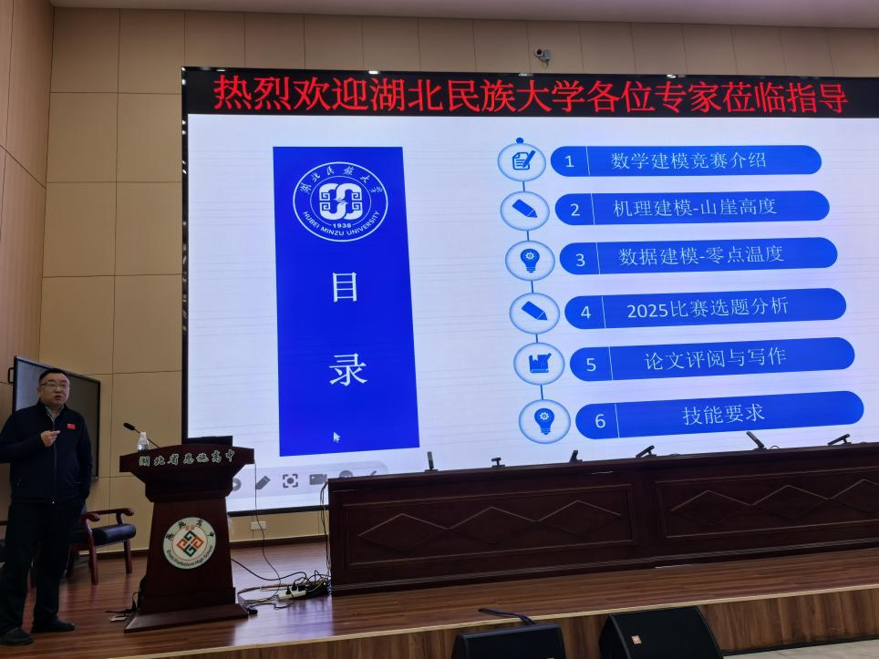 为激发中学生数学学习兴趣,普及数学建模知识,搭建交流桥梁,3月26日晚,数学与统计学院向长城教授赴恩施高中开展数学建模专题讲座。学院数学建模课程团队、团委素质拓展部、数学建模部部分成员参加,与恩施高中的同学们共同交流学习。