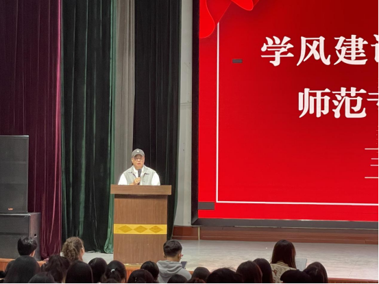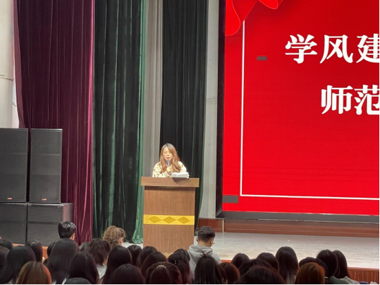 为全面做好音乐学师范专业认证工作,确保顺利通过专家组的进校考查,10月13日,音乐舞蹈学院在演播厅召开学风建设专题会议暨音乐学师范专业认证动员大会。此次大会旨在统一思想,明确目标,凝聚力量,为师范专业认证工作奠定坚实基础。音乐舞蹈学院党总支书记张蕊,院长谷秋阳,副院长王松,学生科科长胡自爱,音乐系系主任张玲玲,全体音乐学班主任及2022级、2023级、2024级音乐学专业学生参会。大会由党总支书记张蕊主持。