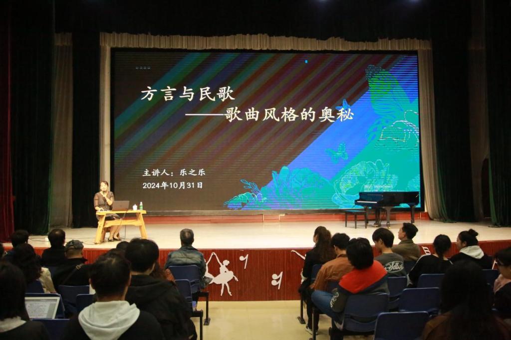 2024年10月31日下午14点30分,吉首大学音乐舞蹈学院副院长、湖南省青年骨干教师、吉首大学俊彦学者、教育部评估专家乐之乐教授在音乐舞蹈学院演播厅举办了《方言与民歌 ——歌曲风格的奥秘》的讲座。参加本次讲座的有365电子娱乐官方网站音乐舞蹈学院党总支书记张蕊,院长谷秋阳,副院长焦娜、王松,音乐舞蹈学院全体教师及音乐系全体同学参加了此次活动。活动由院长谷秋阳主持。