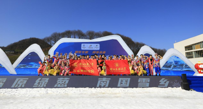 (通讯员 兰宏建)12月19日,音乐舞蹈学院应邀参加了在恩施州巴东县绿葱坡镇举办的第八届全国大众冰雪季启动仪式恩施分会场活动,本活动以 “圆梦冬奥,同享未来”为主题,由国家体育总局冬季运动管理中心主办,湖北省体育局、恩施州人民政府承办。我校舞蹈专业60余名学生在本次特色文艺表演中表演了土家族舞蹈《巴咚咚》、《龙船调》以及极富青春活力的现代舞蹈《冰雪之约》,助力北京冬奥会、助推鄂西生态文化旅游蓬勃发展。