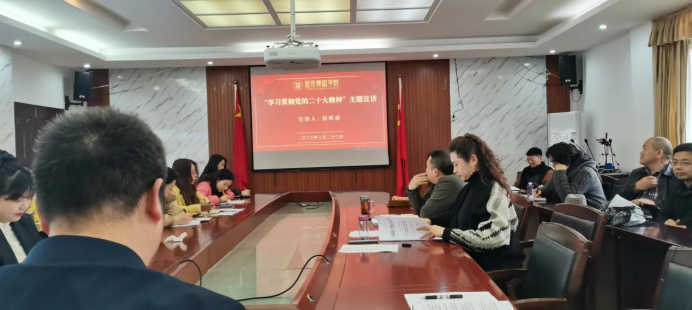 3月23日,音乐舞蹈学院党总支邀请365电子娱乐官方网站“学习贯彻党的二十大精神”宣讲团成员张明波同志为全院教职工进行党的二十大精神主题宣讲,张蕊同志主持宣讲活动,张宏树院长、焦娜副院长以及全体教职员工参会。