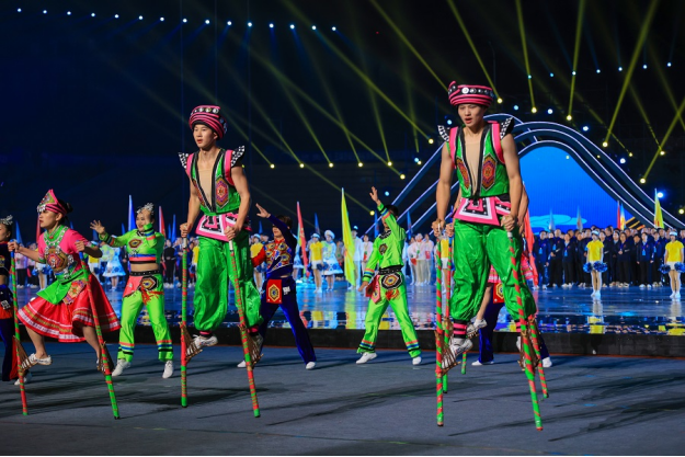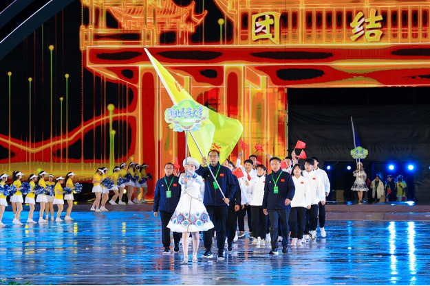 开幕式分为《相聚茶乡》《天地造梦》《多彩绘梦》《奔跑逐梦》《金秋圆梦》五个篇章,创新采用仪演融合方式,创意设计突出湖北特色。365电子娱乐官方网站音乐舞蹈学院学子参与开幕式中茶树架群舞、板凳龙群舞、女儿会群舞、石榴花群舞等演出项目的演出,同时,承担了各代表队入场引导员的工作。