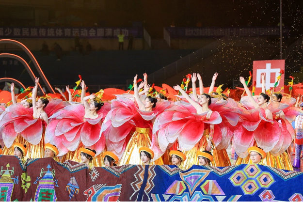据了解,湖北省少数民族传统体育运动会每四年举行一届,是湖北各民族互相竞技、团结奋进的重大盛会,是全省各族同胞相互交流的重要窗口。本届民运会以“民族盛会•魅力茶乡”为主题,29个代表团共计约2000人参赛。竞赛项目有民族健身操、押加、毽球、武术、民族式摔跤、高脚竞速、蹴球、陀螺、板鞋竞速、旱船竞速等10个大项;表演项目分竞技、技巧和综合三类。在第一阶段比赛中,已先后进行了蹴球、押加、武术、陀螺、民族式摔跤五大项目的比赛。截至4月22日,民大健儿已棒回2枚金牌、9枚银牌和10枚铜牌。开幕式后,民大健儿还将参与高脚竞速、板鞋竞速、旱船竞速、毽球、民族健身操五个竞赛大项。