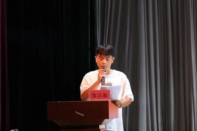 老生代表赵浪莎鼓励新生确定目标、坚持学习、培养能力,锻炼自我,以昂扬向上的精神面貌开始大学生活。