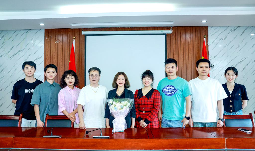 讲座结束后张莉主席与编导老师们在音舞学院四楼会议室对作品进行分析交流。编导们分别对自己的作品进行阐述,张莉主席对每个作品进行分析,并指出问题。她指出:《林间水漫漫》这个女子古典舞具有古典的韵味,队形和动作变换丰富,但演员要注意脚下的细节以及古典舞的形态;《青鹊》的编导虽然是一名学生,但非常有勇气,能够积极参与创作,把作品中青鹊的灵动性表达的很好;作品《顽牛耍起来》以土家族非遗顽牛和耍耍为元素,表达情绪欢快热烈,需要在耍字上深挖,表达好顽牛过程中演员间的传情达意;作品《卡普》以西兰卡普的编织为题材,展现了一副美丽的土家织锦图画,需要在编织动作的程序上再细化;作品《大地之上》值得表扬,整体上看大气沉着,很好的展现了土家青年的精神风貌,但还需要深度挖掘作品立意,把"大地之上"的思想表达更加升华。