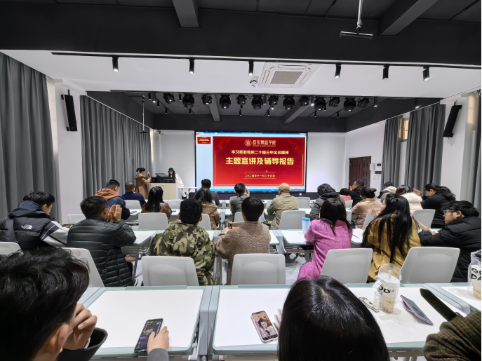 11月29日,音乐舞蹈学院党总支副书记邓丽同志,在学院演播厅为音乐舞蹈学院入党积极分子、团学干部代表以“凝聚改革共识 激发奋进力量——学习领会党的二十届三中全会精神”为题,讲了一堂生动的主题党课。课上邓书记给同学们梳理了党的二十届三中全会召开的概况,组织同学们重点学习了《中共中央关于进一步全面深化改革 推进中国式现代化的决定》(进一步全面深化改革的重大意义和总体要求);结合结合新时代大学生成长成才重点阐述了作为新时代大学生如何正确认识支持党中央的决策部署,以及作为新时代大学生如何将个人成长融入国家发展等问题。现场的同学们哥哥聚精会神,收获满满。