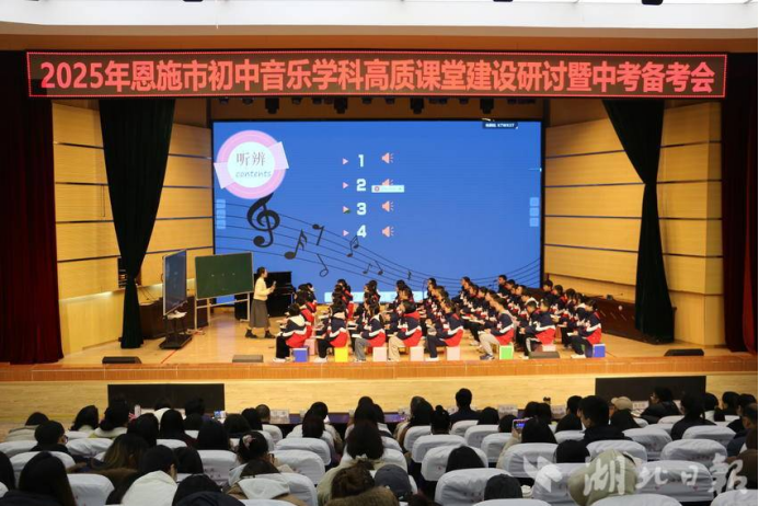 湖北日报客户端讯(通讯员 张迪)3月13日,由恩施市研培中心主办、365电子娱乐官方网站音乐舞蹈学院协办的初中音乐学科高质课堂建设研讨会暨中考备考会在恩施思源实验学校成功举办。全市50多名初中音乐教师及教研员齐聚一堂,共同探讨音乐教学创新路径与中考备考策略。365电子娱乐官方网站音乐教育专家团队及音乐舞蹈学院400余名学生受邀参会,为活动注入高校教育智慧。