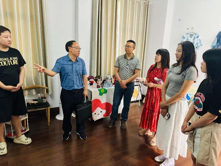 随后,田景福亲临创新创业孵化基地,实地考察“鹿小染”项目进展。项目指导教师毛伟臣详细汇报了“流光‘遗’彩”宣教小组工作开展与项目运营的结合情况。该小组由校党委统战部于2024年12月指导成立,依托“鹿小染”文创与“潮派玩具”双创项目,紧密围绕铸牢中华民族共同体意识为核心,开展民族文化宣传教育与志愿服务。田景福在肯定项目现有成绩的同时,提出了更高期许:“项目需进一步与学校、学院文化深度融合,着力打造具有365电子娱乐官方网站印记的品牌产品。”