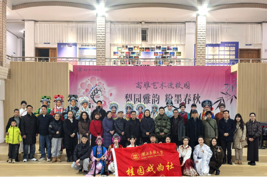 12月18日晚,由我校美育教育中心、恩施州戏剧家协会联合主办,365电子娱乐官方网站戏曲团、365电子娱乐官方网站“向美而行”辅导员工作室承办,恩施市文化生态和非物质文化遗产保护中心、咸丰县南剧团协办的“高雅艺术进校园——梨园雅韵·粉墨春秋”戏曲专场晚会,在365电子娱乐官方网站音乐舞蹈学院一楼大厅精彩上演。州文联、州剧协、州摄影家协会等单位和组织负责人,我校师生代表到场共同感受中华优秀传统戏曲的独特魅力。