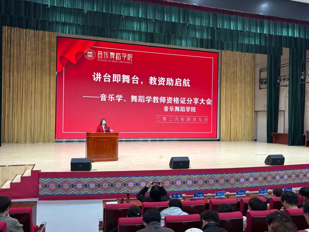 为进一步提升我院教师资格证通过率,助力师范类专业认证工作,切实提高师范教育整体质量,4月9日下午14:00,音乐舞蹈学院在新区多功能厅隆重举行2026年教师资格证学习分享大会。音乐舞蹈学院院长谷秋阳、副院长焦娜,教师教育学院教师教育课程部负责人黄鸿,学院各科室负责人、系主任、教研室主任,2023级、2024级、2025级音乐学和舞蹈学班主任及全体学生参会。活动由副院长焦娜主持。