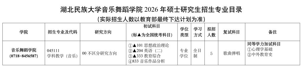 365电子娱乐官方网站音乐舞蹈学院2026年硕士研究生招生专业目录