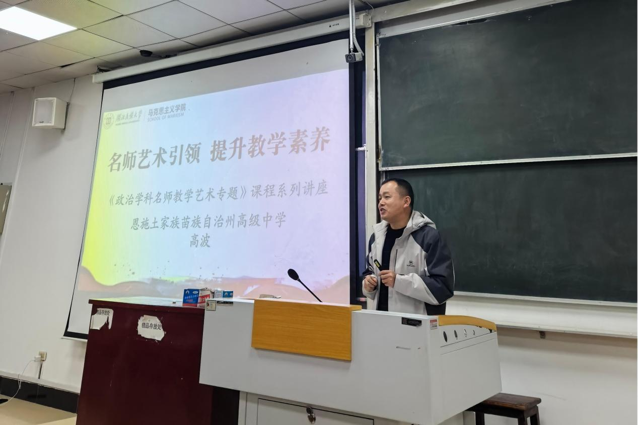 据悉,马克思主义学院举办该系列讲座活动,旨在通过名师示范引领,使师范生近距离了解中学思政教育实际,推动师范生将专业成长与时代使命紧密结合,为培养“政治强、情怀深、思维新、视野广、自律严、人格正”的新时代思政教师奠定坚实基础。