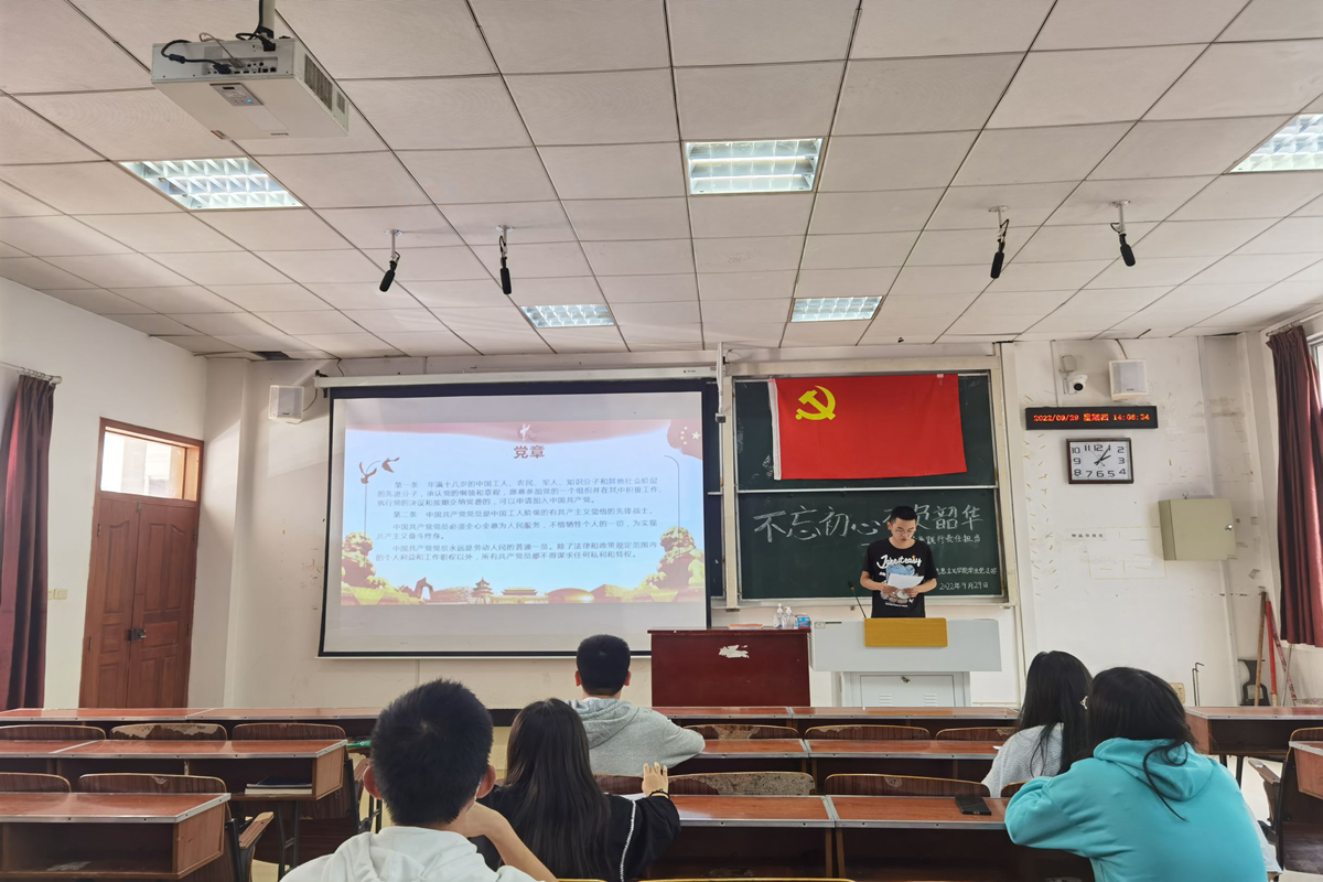 本网讯(通讯员 赵光荣 王晓霞/文 孙航/图)9月29日,我院学生党支部于德智楼9B208教室开展九月主题党日。学生党支部书记杨婷,教师党员毛召、兰洁以及全体学生党员、预备党员参加。