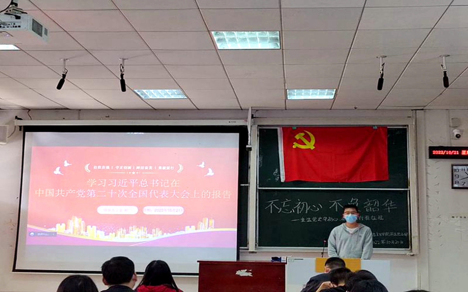 10月20日下午,我院学生党支部于德智楼9B208教室开展十月主题党日。学生党支部书记杨婷,教师党员兰洁、毛召以及全体学生党员、预备党员参加。
