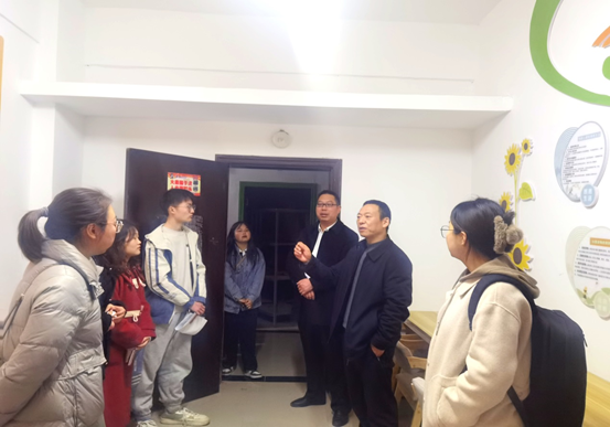 在走访我院学生活动功能室时,罗成富强调学生活动功能室要坚持“以人为本、围绕学生、服务学生、关照学生、引导学生”的工作理念,紧抓思政特色,创新工作模式,构建育人新阵地。同时,罗成富一行就我院学生活动功能室的职能应用、文化氛围等提出了相关要求与建议。