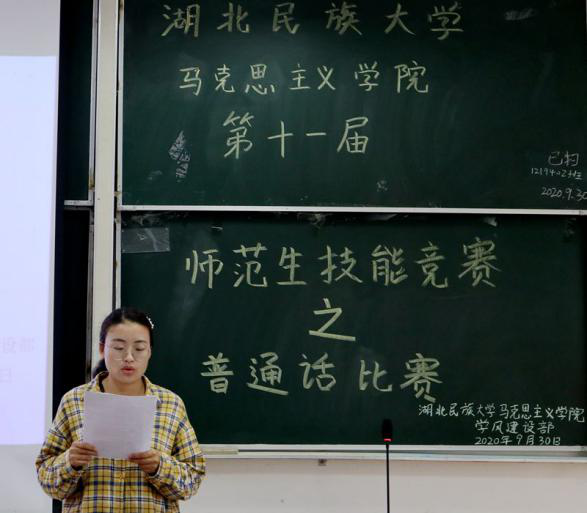 9月30日下午,普通话比赛在德智楼9B208教室举办。我院教师杨思奇、黄朝东担任比赛评委。
