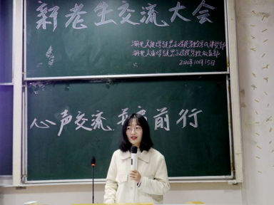 本网讯(通讯员 罗灿莉 阳薇/文 杨静英 周红/图)10月15日晚,我院在德智楼9B208教室举办以“心声交流,并肩前行”为主题的2020级新老生交流大会。老生代表王仪晨、胡佳玮、訾薇薇、刘思思、陈黛出席大会并担任主讲人,大一全体新生参与此次活动。