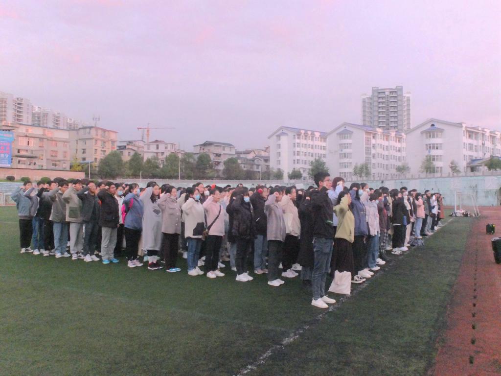 本网讯(通讯员 田金爽 胡晓丽 祝享菊/文 钟静双 黄丽兰 黄淋淋/图)11月8日上午,我院联合化学与环境工程学院在五环体育场成功举办“国旗下的民大青春”特别主题团日活动,化学与环境工程学院团总支书记刘恒、我院团总支书记毛召以及两院大一、大二全体学生参与此次活动。