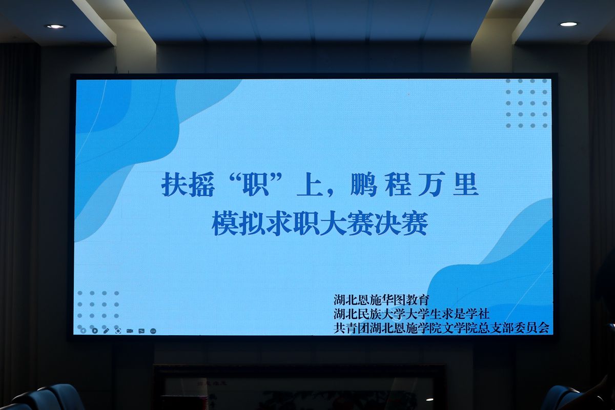 本网讯(通讯员 成楠/文 黄琳淋/图))6月19日下午,我院大学生求是学社联合共青团湖北恩施学院文学院总支部委员会、华图教育于德智楼三楼会议室举办了扶“摇‘职’上,鹏程万里”模拟求职大赛。恩施市华图教育分校校长谭俊、教师王菲凡、谭远斌、我院团总支书记毛召应邀出席。此次活动面向我校及湖北恩施学院全体学生。