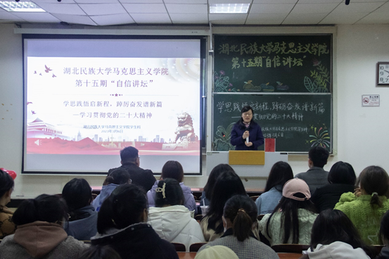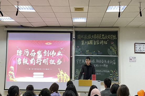 3月6日晚,第十五期自信讲坛于德智楼9B210教室顺利举行。我院教师崔应美受邀出席,我院研究生代表李海港、本科生代表田金爽担任主讲人。全体大一学生参与此次活动。
