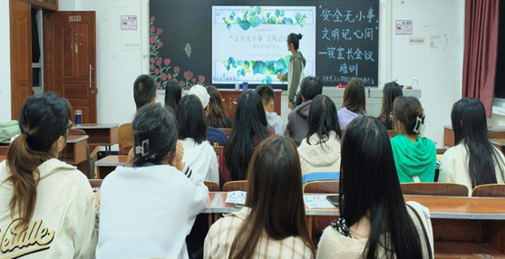 李晶晶就卫生检查标准、寝室安全防范、优秀寝室评定三方面进行讲解,着重强调违禁物品危害性及处理办法,并指出寝室长角色的重要性,号召寝室长积极配合公寓管理委员会进行安全排查工作,共建文明安全寝室。