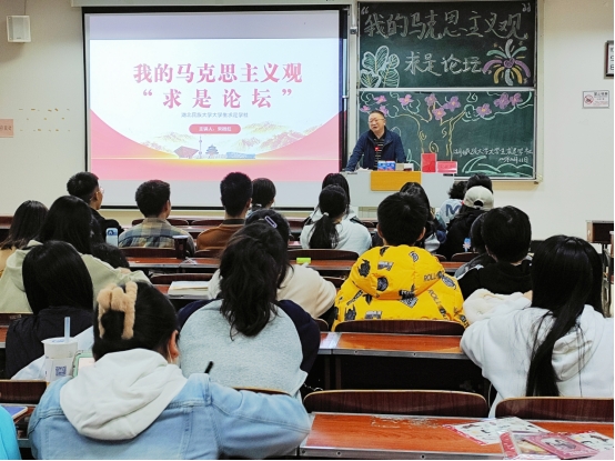 10月31日晚,大学生求是学社在德智楼9B210教室举办“我的马克思主义观”求是论坛活动。我院副教授宋祖红老师受邀出席并担任主讲人,学校部分学生到场聆听。