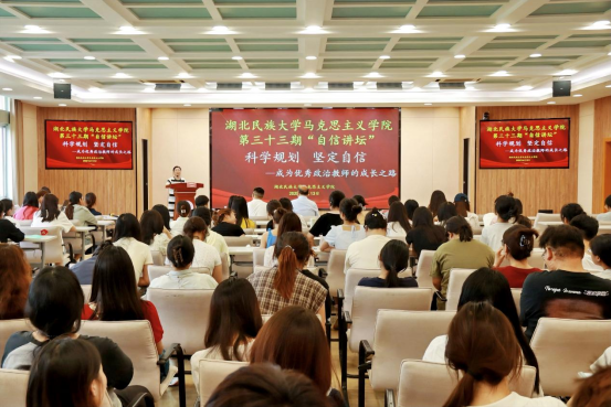 6月13日,马克思主义学院在德智楼三楼远程教学观摩室举办以“科学规划 坚定自信——成为优秀政治教师的成长之路”为主题的第三十三期“自信讲坛”活动。活动特邀中国国家基础教育联盟课程专家、中国名师工作室联盟成员、中国成人教育协会特聘授课专家、教育部师范大学基础教育课研中心评审专家、浙江省德育名师工作室负责人、浙江省德育学科带头人、浙江省政治学科骨干教师、我院1996级优秀校友段云成担任主讲嘉宾。学院党总支书记向驰受邀出席,大二、大三全体学生参加活动。活动由学院党总支副书记欧玲主持。