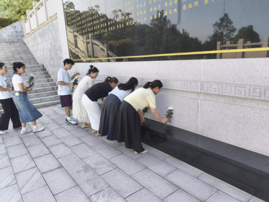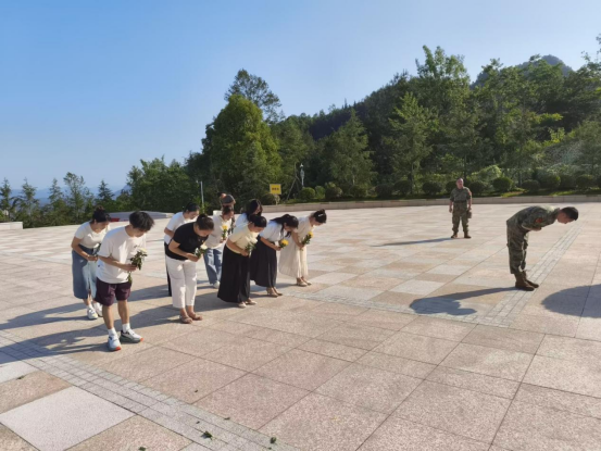 (在何功伟村烈士陵园纪念碑前默哀鞠躬)