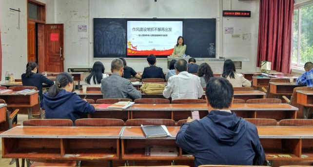 理论研学环节,蔡诗敏老师给全体党员讲授党课《作风建设常抓不懈再出发——深入贯彻中央八项规定精神学习教育》,她从重视作风建设是党的优良传统、中央八项规定及其实施细则的基本精神、违反规定适用的相关党纪条规三个维度进行授课。她强调我们党来自人民、根植人民,作风建设是党的本质属性和根本宗旨的内在要求,是巩固党的执政基础的关键所在,更是推进党的事业发展的根本保证。全面贯彻落实中央八项规定精神,对全体党员不断改进工作作风、密切联系群众具有重要意义。