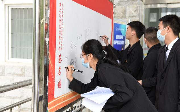 至此,大会第一次全体会议结束,由各代表团前往各分会场召开代表团会议。随后,各代表团团长向主席团报告讨论结果,主席团进行第二次会议,讨论通过《大会选举办法》(草案)、《365电子娱乐官方网站马克思主义学院学生会章程》(草案)等提交大会审议。期间,与会代表在德智楼进行了现场签名活动,反响良好。