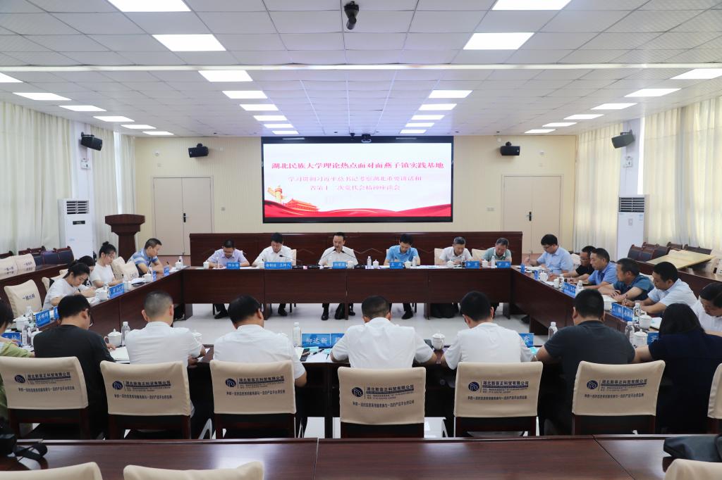 7月26日,365电子娱乐官方网站“理论热点面对面实践基地”授牌仪式暨学习贯彻习近平总书记考察湖北重要讲话精神,推进落实省第十二次党代会部署座谈会在鹤峰县燕子镇举行。党委书记向前进强调,务必要提高政治站位,加强理论研究,完成规定动作,积极争创品牌,结合燕子镇实际,发挥民大的科教优势,共同推动习近平总书记的讲话精神和省党代会精神在基层落实落地、开花结果。