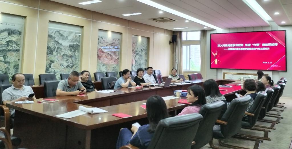 2024年6月27日下午,思想政治理论课教学部党支部在马院会议室开展“深入开展党纪学习教育 锻造‘六要’思政课教师队伍”主题党日活动。