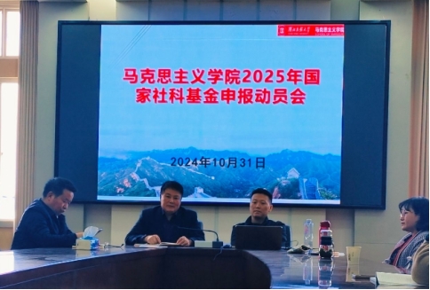 副院长张胥针对2025年国家社科基金项目申报工作进行了动员和部署。他强调,全体教职员工要高度重视和积极参与,特别是教授、副教授及引进的青年博士更要发挥自身优势、带头申报;学院将加强组织保障,邀请校内外专家进行辅导和评审,提升项目申报书的质量。在教学方面,他指出:“学院将开展课程考核工作、课程目标达成度评价执行情况检查,进一步加强基层教学组织建设、做好集体备课,利用好周末理论大讲堂等平台提高教师教学水平”。