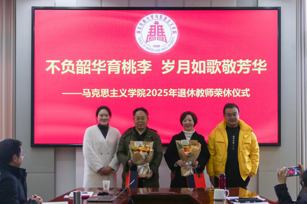 本网讯 1月9日,马克思主义学院举行2025年退休教师荣休仪式,为刘小燕、谭大友和杨春彩三位资深教师致以崇高敬意。